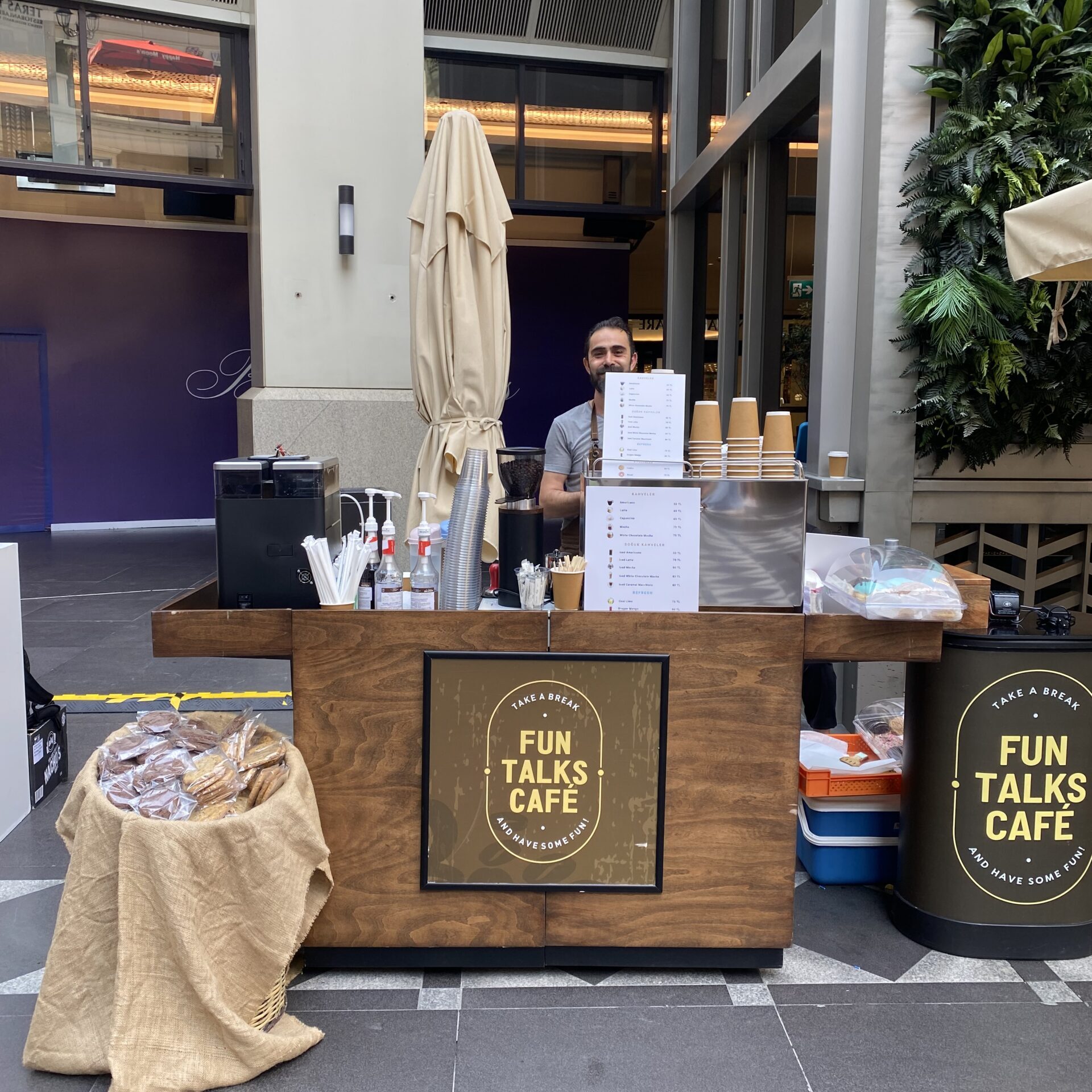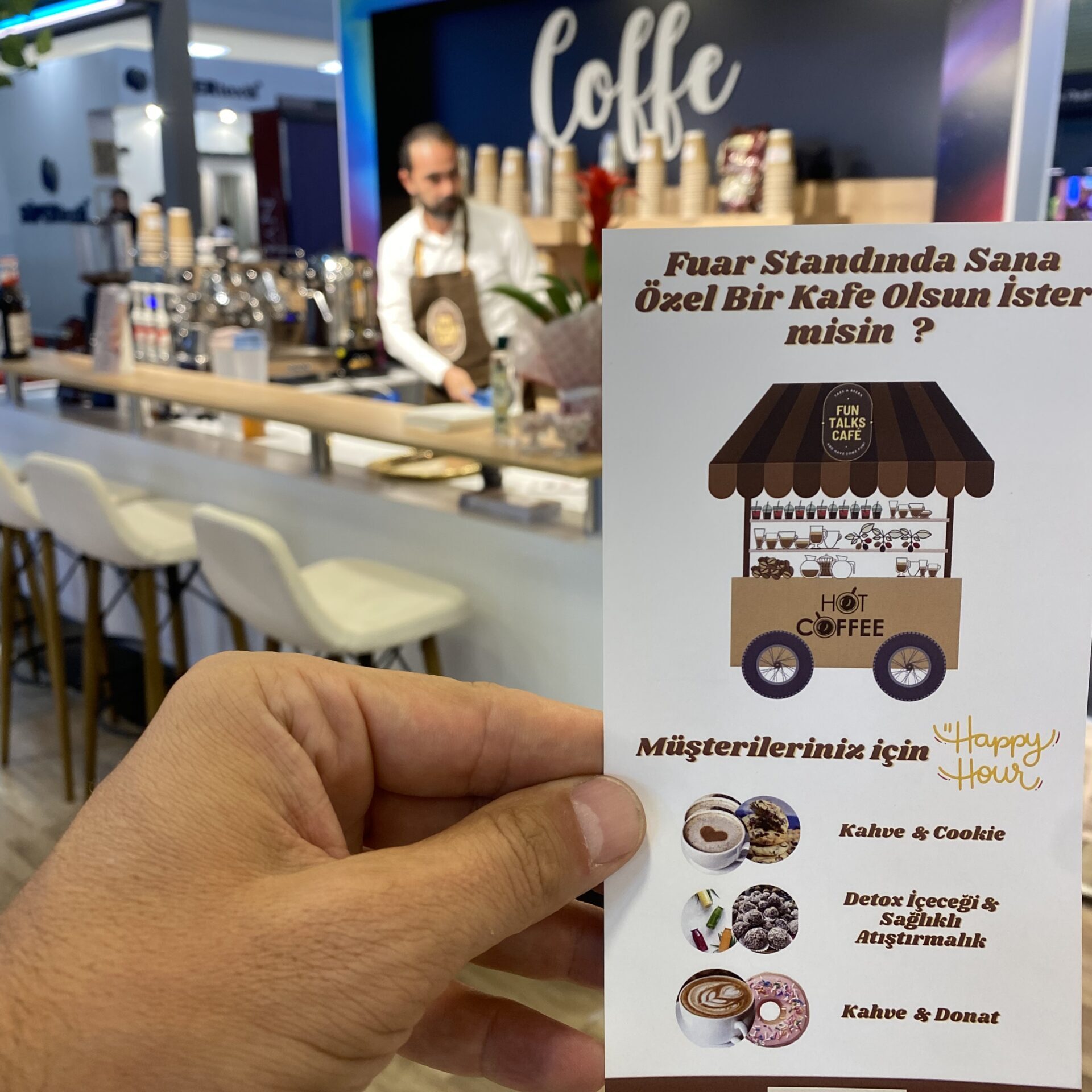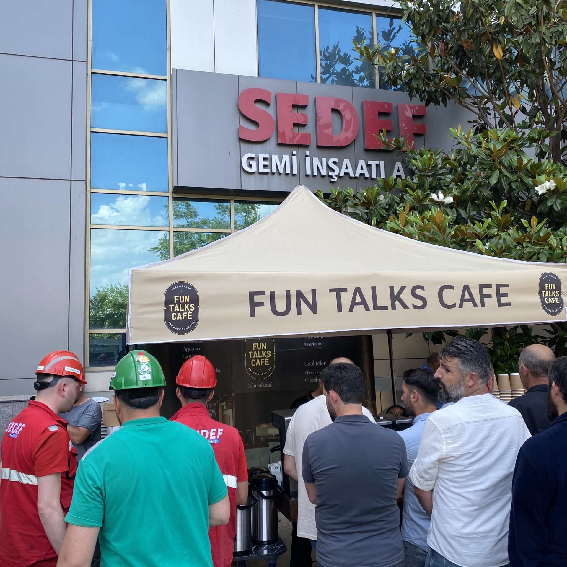 Fun Talks Cafe yeni nesil happy hour ile şirket motivasyon etkinliklerinde, kongre, festival, konser gibi tüm organizasyonlarda kafe ortamı oluşturarak lezzet dağıtıyor.